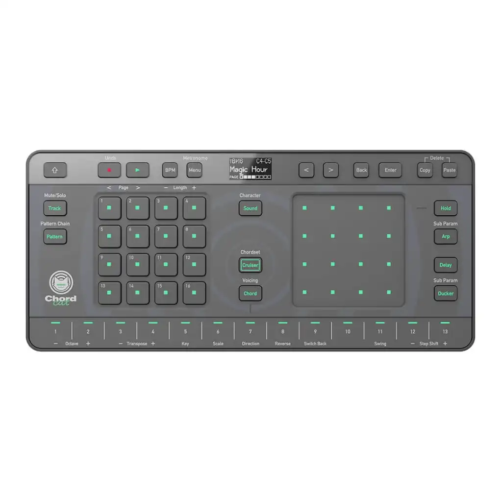 Chordcat Chord Cruiser Modu sayesinde 110.000’e kadar akor kombinasyonu üretilebilir. Chordcat i Chord Cruiser moduna aldığınızda, özel bir algoritma veritabanından birden fazla müzikle uyumlu akor seçip önerecektir. Bu akorları dinleyebilir ve favorilerinizi bir klavyeye atayarak bir sonraki öneriyi otomatik olarak harekete geçirebilirsiniz. Parmaklarınızın ucundaki bu sezgisel iş akışıyla, orijinal parçalar oluşturmak basit ve keyfli bir hal alacaktır. Chordcat üzerindeki XY pad ile kontrol edilebilen 3 adet yerleşik efekte sahiptir. Arpeggiator, Delay, Ducker bu efektler ile oluşturduğunuz her kanal farklı bir boyut kazanır.