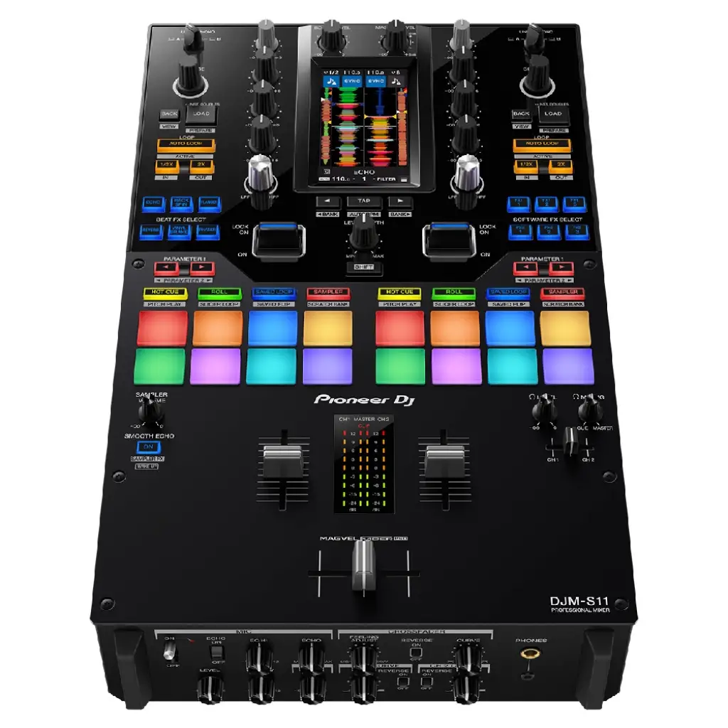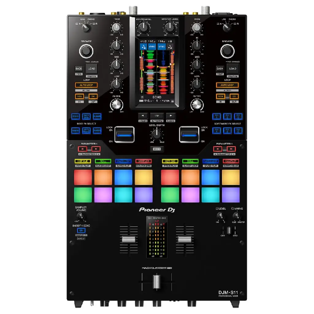 Pioneer DJM-S11, AlphaTheta imzasıyla battle ve performans DJ’leri için tasarlanmış profesyonel bir 2 kanallı DJ mikseridir. Serato DJ Pro ve rekordbox yazılımlarıyla tam uyumlu olan DJM-S11, 4.3 inç dokunmatik ekranı, Magvel Fader Pro crossfader’ı, gelişmiş efekt seçenekleri ve ekstra deck kontrol özelliği ile sahnede yaratıcılığı en üst seviyeye taşır.